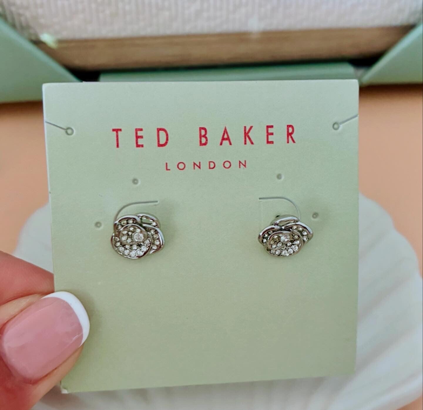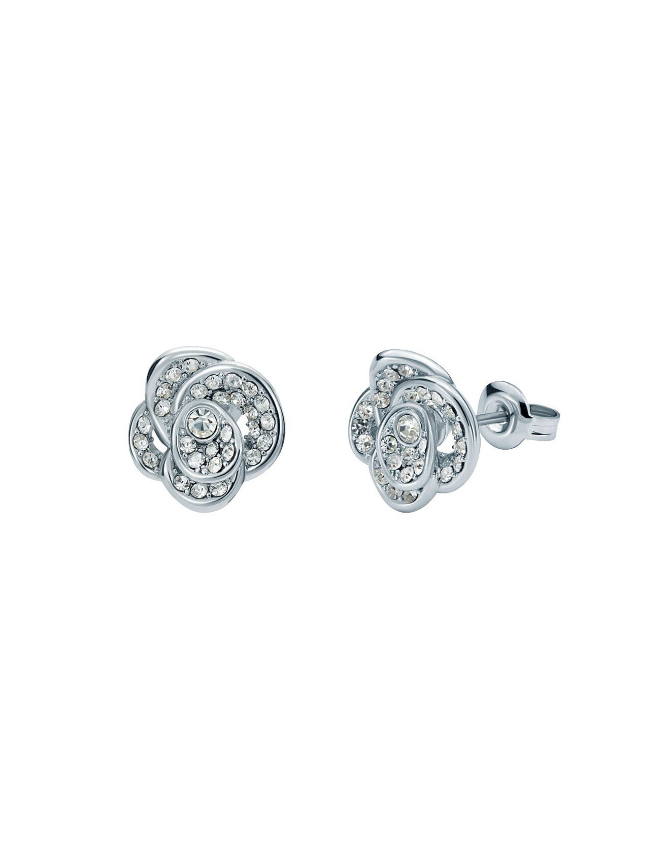 The Ted Baker flower stud earrings are simply divine and perfect for day or night. This single metal flower set with shimmering European crystal is finished with silver tone plating with hypoallergenic posts and secure butterfly backs.